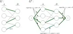 - Assignment problem. Suppose that each partite set in the bipartition has vertices, and denote the bipartition by . Give each supply and give each demand . Each edge is to have unit capacity.