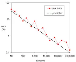 In principle, Monte Carlo methods can be used to solve any problem having a probabilistic interpretation. By the law of large numbers, integrals described by the expected value of some random variable can be approximated by taking the empirical mean (a.k.a. the 'sample mean') of independent samples of the variable. When the probability distribution of the variable is parameterized, mathematicians often use a Markov chain Monte Carlo (MCMC) sampler.[4][5][6] The central idea is to design a judicious Markov chain model with a prescribed stationary probability distribution. That is, in the limit, the samples being generated by the MCMC method will be samples from the desired (target) distribution.[7][8] By the ergodic theorem, the stationary distribution is approximated by the empirical measures of the random states of the MCMC sampler.