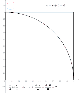 - The ratio of the inside-count and the total-sample-count is an estimate of the ratio of the two areas, π/4. Multiply the result by 4 to estimate π.