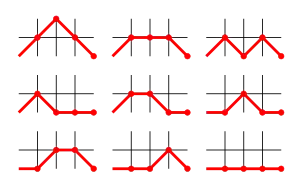 For example, the following figure shows the 9 valid Motzkin paths from (0, 0) to (4, 0):