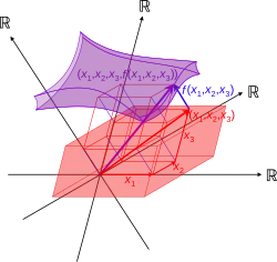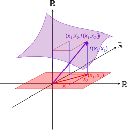 In mathematical analysis and its applications, a function of several real variables or real multivariate function is a function with more than one argument, with all arguments being real variables. This concept extends the idea of a function of a real variable to several variables. The "input" variables take real values, while the "output", also called the "value of the function", may be real or complex. However, the study of the complex-valued functions may be easily reduced to the study of the real-valued functions, by considering the real and imaginary parts of the complex function; therefore, unless explicitly specified, only real-valued functions will be considered in this article.