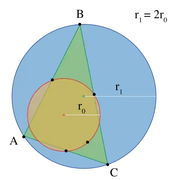 - The radius of a triangle's circumcircle is twice the radius of that triangle's nine-point circle.[6]: p.153