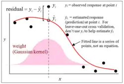 Kernel regression estimates the continuous dependent variable from a limited set of data points by convolving the data points' locations with a kernel function—approximately speaking, the kernel function specifies how to "blur" the influence of the data points so that their values can be used to predict the value for nearby locations.