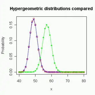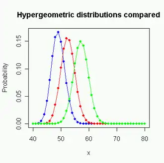 In statistics, the hypergeometric distribution is the discrete probability distribution generated by picking colored balls at random from an urn without replacement.