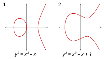 Two examples of elliptic curves, that is, curves of genus 1 having at least one rational point.