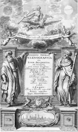 Al-Haytham as seen by the West: on the frontispiece of Selenographia Alhasen [sic] represents knowledge through reason and Galileo knowledge through the senses.