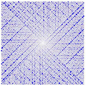 The distribution of prime numbers, a central point of study in number theory, illustrated by an Ulam spiral. It shows the conditional independence between being prime and being a value of certain quadratic polynomials.