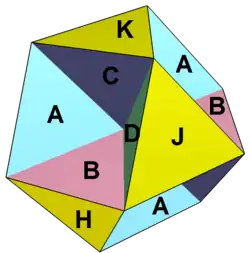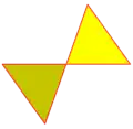 In geometry, the octahemioctahedron or allelotetratetrahedron is a nonconvex uniform polyhedron, indexed as U3. It has 12 faces (8 triangles and 4 hexagons), 24 edges and 12 vertices.[1] Its vertex figure is a crossed quadrilateral.