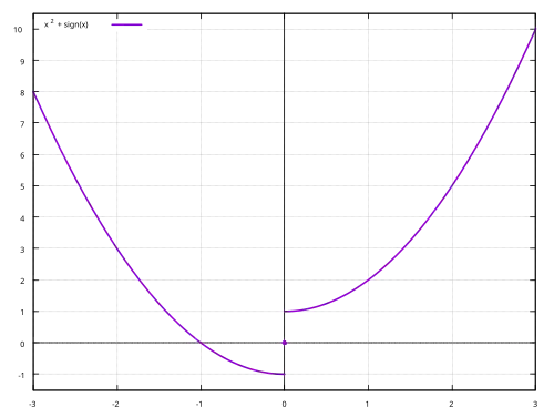Example 2: One example of a function with different one-sided limits is (cf. picture) where the limit from the left is and the limit from the right is To calculate these limits, first show that (which is true because ) so that consequently, whereas because the denominator diverges to infinity; that is, because Since the limit does not exist.