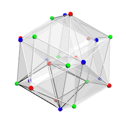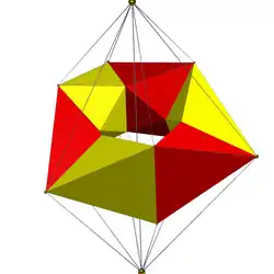 - ↑ Egan 2021, animation of a rotating 24-cell: red half-integer vertices (tesseract), yellow and black integer vertices (16-cell).