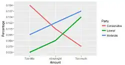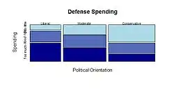 ![]() Example mosaic plot of opinion on defense spending by political party |