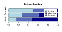 ![]() Example stacked bar plot of opinion on defense spending by political party |