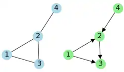 The directed graph (or digraph) on the right is an orientation of the undirected graph on the left.