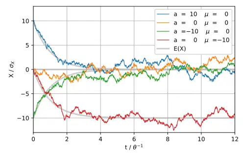 In mathematics, the Ornstein–Uhlenbeck process is a stochastic process with applications in financial mathematics and the physical sciences. Its original application in physics was as a model for the velocity of a massive Brownian particle under the influence of friction. It is named after Leonard Ornstein and George Eugene Uhlenbeck.