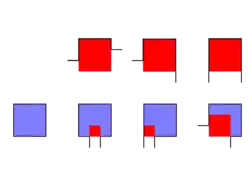 A rectilinear polygon can be covered by a finite number of squares or rectangles with edges parallel to the edges of the polygon (see Polygon covering). It is possible to distinguish several types of squares/rectangles contained in a certain rectilinear polygon P:[1]