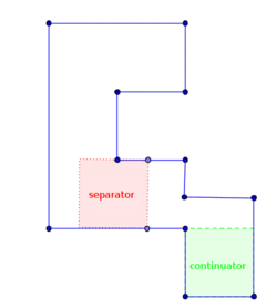 No square can be both a continuator and a separator. In general polygons, there may be squares that are neither continuators nor separators, but in simple polygons this cannot happen:[1]