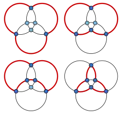 A maximal planar graph is a planar graph in which all faces, even the outer face, are triangles. A maximal planar graph is node-pancyclic if and only if it has a Hamiltonian cycle:[5] if it is not Hamiltonian, it is certainly not pancyclic, and if it is Hamiltonian, then the interior of the Hamiltonian cycle forms a maximal outerplanar graph on the same nodes, to which the previous argument for maximal outerplanar graphs can be applied.[6] For instance, the illustration shows the pancyclicity of the graph of an octahedron, a Hamiltonian maximal planar graph with six vertices. More strongly, by the same argument, if a maximal planar graph has a cycle of length , it has cycles of all smaller lengths.[7]