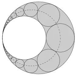 In geometry, the Pappus chain is a ring of circles between two tangent circles investigated by Pappus of Alexandria in the 3rd century AD.