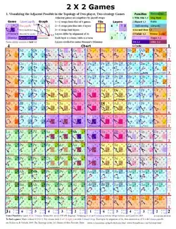 The topological space of games with related payoff matrices can also be mapped, with adjacent games having the most similar matrices. This shows how incremental incentive changes can change the game.