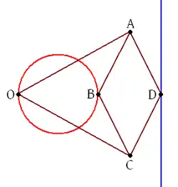 Thus, by the properties of inversive geometry, since the figure traced by point D is the inverse of the figure traced by point B, if B traces a circle passing through the center of inversion O, then D is constrained to trace a straight line. But if B traces a straight line not passing through O, then D must trace an arc of a circle passing through O. Q.E.D.