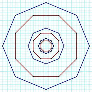 As Knuth (1994) describes, the fact that Pell numbers approximate √2 allows them to be used for accurate rational approximations to a regular octagon with vertex coordinates (± Pi, ± Pi +1) and (± Pi +1, ± Pi ). All vertices are equally distant from the origin, and form nearly uniform angles around the origin. Alternatively, the points , , and form approximate octagons in which the vertices are nearly equally distant from the origin and form uniform angles.