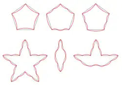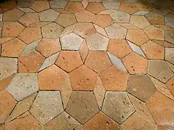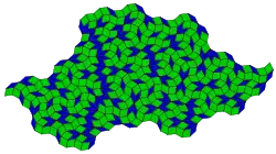 - ↑ "However, as will be explained momentarily, differently colored pentagons will be considered to be different types of tiles." Austin 2005a; Grünbaum & Shephard 1987, figure 10.3.1, shows the edge modifications needed to yield an aperiodic set of prototiles.