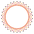 Deeper truncations of the regular pentadecagon and pentadecagrams can produce isogonal (vertex-transitive) intermediate star polygon forms with equal spaced vertices and two edge lengths.[4]