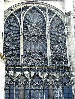 The North rose of Amiens Cathedral (built in the 13th century) exhibits a pentagram-based motif. Some sources interpret the unusual downward-pointing star as symbolizing the Holy Spirit descending on people.