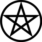 - ↑ this usage is borne out by the Oxford English Dictionary, although that work specifies that a circumscription makes the form of a five-pointed star and its etymon post-classical Latin pentaculum [...] A pentagram, esp. one enclosed in a circle; a talisman or magical symbol in the shape of or inscribed with a pentagram. Also, in extended use: any similar magical symbol (freq. applied to a hexagram formed by two intersecting or interlaced equilateral triangles)."