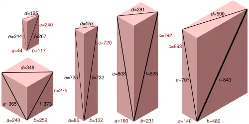 - ↑ Weisstein, Eric W. "Euler Brick". MathWorld.