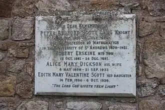 Sir Peter Redford Scott Lang VD FRSE (1850–1926) was a Scottish mathematician and Regius Professor at the University of St Andrews. In the 1880s he instituted “Common Dinners” to bring the students together for joint meals (often referred to as “commies”). This had a major impact upon student social life and was thereafter adopted by several Scottish universities. In memory of this the University of St Andrews holds an annual Scott Lang Dinner.[1]