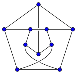 - is the smallest cubic graph of girth 5. (It is the unique -cage. In fact, since it has only 10 vertices, it is the unique -Moore graph.)[12]