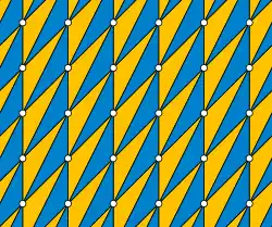 The first part of this proof shows that a triangle with three integer vertices and no other integer points has area exactly , as Pick's formula states. The proof uses the fact that all triangles tile the plane, with adjacent triangles rotated by 180° from each other around their shared edge.[9] For tilings by a triangle with three integer vertices and no other integer points, each point of the integer grid is a vertex of six tiles. Because the number of triangles per grid point (six) is twice the number of grid points per triangle (three), the triangles are twice as dense in the plane as the grid points. Any scaled region of the plane contains twice as many triangles (in the limit as the scale factor goes to infinity) as the number of grid points it contains. Therefore, each triangle has area , as needed for the proof.[5] A different proof that these triangles have area is based on the use of Minkowski's theorem on lattice points in symmetric convex sets.[10]