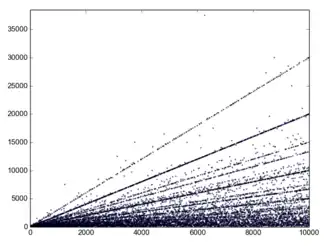 - ↑ Graph of the cycles modulo 1 to 24. Each row of the image represents a different modulo base n, from 1 at the bottom to 24 at the top. The columns represent the Fibonacci numbers mod n, from F(0) mod n at the left to F(59) mod n on the right. In each cell, the brightness indicates the value of the residual, from dark for 0 to near-white for n−1. Blue squares on the left represent the first period; the number of blue squares is the Pisano number.