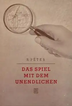 Playing with Infinity was originally written in 1943 by mathematician Rózsa Péter,[1] based on a series of letters Péter had written to a non-mathematical friend, Marcell Benedek.[2] Because of World War II, it was not published until 1955, in German, under the title Das Spiel mit dem Unendlichen, by Teubner.[1]