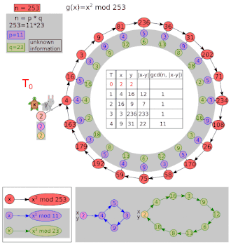 Because the number of possible values for these sequences is finite, both the sequence, which is mod , and sequence will eventually repeat, even though these values are unknown. If the sequences were to behave like random numbers, the birthday paradox implies that the number of before a repetition occurs would be expected to be , where is the number of possible values. So the sequence will likely repeat much earlier than the sequence . When one has found a such that but , the number is a multiple of , so a non-trivial divisor has been found.[2]