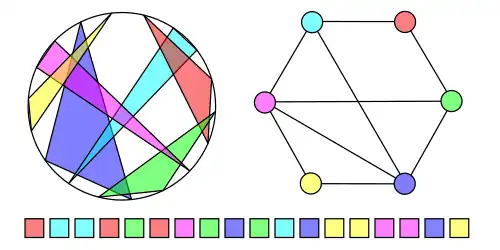 - ↑ Kostochka, Alexandr; Kratochvíl, Jan (1997), "Covering and coloring polygon-circle graphs", Discrete Mathematics, 163 (1–3): 299–305, doi:10.1016/S0012-365X(96)00344-5, MR 1428585.