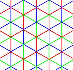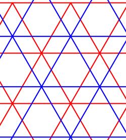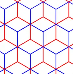 There are also dual-regular tiling compounds. A simple example is the E2 compound of a hexagonal tiling and its dual triangular tiling, which shares its edges with the deltoidal trihexagonal tiling. The Euclidean compounds of two hypercubic honeycombs are both regular and dual-regular.