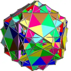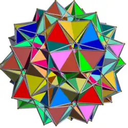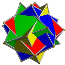 In geometry, a polyhedral compound is a figure that is composed of several polyhedra sharing a common centre. They are the three-dimensional analogs of polygonal compounds such as the hexagram.