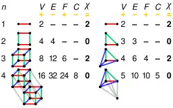 | Name | Image | Vertices V | Edges E | Faces F |