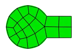 What is the precise definition of a mesh? There is not a universally-accepted mathematical description that applies in all contexts. However, some mathematical objects are clearly meshes: a simplicial complex is a mesh composed of simplices. Most polyhedral (e.g. cubical) meshes are conformal, meaning they have the cell structure of a CW complex, a generalization of a simplicial complex. A mesh need not be simplicial because an arbitrary subset of nodes of a cell is not necessarily a cell: e.g., three nodes of a quad does not define a cell. However, two cells intersect at cells: e.g. a quad does not have a node in its interior. The intersection of two cells may be several cells: e.g., two quads may share two edges. An intersection being more than one cell is sometimes forbidden and rarely desired; the goal of some mesh improvement techniques (e.g. pillowing) is to remove these configurations. In some contexts, a distinction is made between a topological mesh and a geometric mesh whose embedding satisfies certain quality criteria.