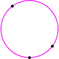 Van Roomen's friend François Viète, who had urged van Roomen to work on Apollonius' problem in the first place, developed a method that used only compass and straightedge.[20] Prior to Viète's solution, Regiomontanus doubted whether Apollonius' problem could be solved by straightedge and compass.[21] Viète first solved some simple special cases of Apollonius' problem, such as finding a circle that passes through three given points which has only one solution if the points are distinct; he then built up to solving more complicated special cases, in some cases by shrinking or swelling the given circles.[1] According to the 4th-century report of Pappus, Apollonius' own book on this problem—entitled Ἐπαφαί (Epaphaí, "Tangencies"; Latin: De tactionibus, De contactibus)—followed a similar progressive approach.[11] Hence, Viète's solution is considered to be a plausible reconstruction of Apollonius' solution, although other reconstructions have been published independently by three different authors.[22]