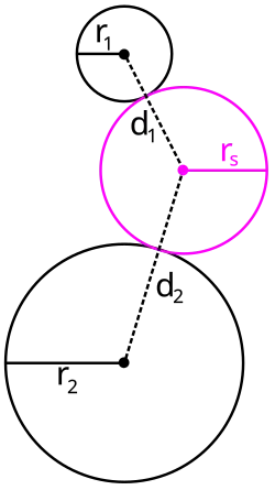 - ↑ Lewis RH, Bridgett S (2003). "Conic Tangency Equations and Apollonius Problems in Biochemistry and Pharmacology". Mathematics and Computers in Simulation. 61 (2): 101–114. CiteSeerX 10.1.1.106.6518. doi:10.1016/S0378-4754(02)00122-2.