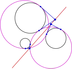 Rouché, Eugène; Ch de Comberousse (1883). Traité de géométrie (in French) (5th edition, revised and augmented ed.). Paris: Gauthier-Villars. pp. 252–256. OCLC 252013267. - ↑ Coaklay GW (1860). "Analytical Solutions of the Ten Problems in the Tangencies of Circles; and also of the Fifteen Problems in the Tangencies of Spheres". The Mathematical Monthly. 2: 116–126.