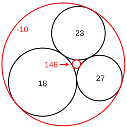 Aste T, Weaire D (2008). The Pursuit of Perfect Packing (2nd ed.). New York: Taylor and Francis. pp. 131–138. ISBN 978-1-4200-6817-7. - ↑ Mumford D, Series C, Wright D (2002). Indra's Pearls: The Vision of Felix Klein. Cambridge: Cambridge University Press. pp. 196–223. ISBN 0-521-35253-3.