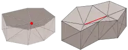 • Combinatorial n-complexes defined by gluing two n-simplexes at a (n-1)-face are not always n-pseudomanifolds. Gluing can induce non-pseudomanifoldness.[5]