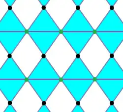 The tetragonal disphenoid tetrahedral honeycomb is a space-filling tessellation (or honeycomb) in Euclidean 3-space made up of identical tetragonal disphenoidal cells. Cells are face-transitive with 4 identical isosceles triangle faces. John Horton Conway calls it an oblate tetrahedrille or shortened to obtetrahedrille.[1]