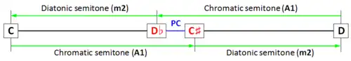- ↑ Apel, Willi (1969). Harvard Dictionary of Music, p. 188. ISBN 978-0-674-37501-7. "...the difference between the two semitones of the Pythagorean scale..."