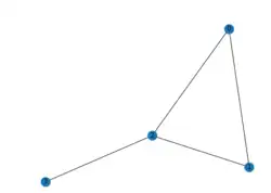Consider the graph given in the figure. It has four vertices and there are two minimum vertex cover for this graph: vertices 0 and 2, and the vertices 1 and 2. These can be respectively represented by the bit strings 1010 and 0110. The goal of the algorithm is to sample these bit strings with high probability. In this case, the cost Hamiltonian has two ground states, |1010⟩ and |0110⟩, coinciding with the solutions of the problem. The mixer Hamiltonian is the simple, non-commuting sum of Pauli-X operations on each node of the graph and they are given by: