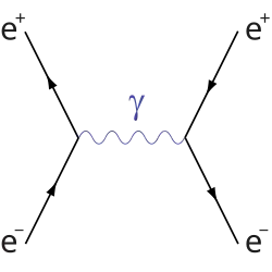 At the same time, Feynman introduced the path integral formulation of quantum mechanics and Feynman diagrams.[8]: 2 The latter can be used to visually and intuitively organize and to help compute terms in the perturbative expansion. Each diagram can be interpreted as paths of particles in an interaction, with each vertex and line having a corresponding mathematical expression, and the product of these expressions gives the scattering amplitude of the interaction represented by the diagram.[1]: 5